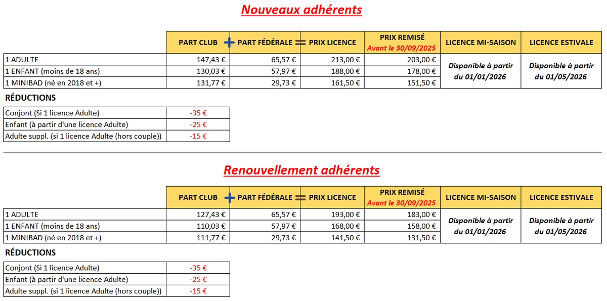 (volants non fournis et plafond de 140 € uniquement sur la participation aux compétitions adultes).