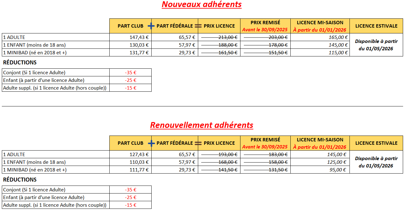 (volants non fournis et plafond de 140 € uniquement sur la participation aux compétitions adultes).